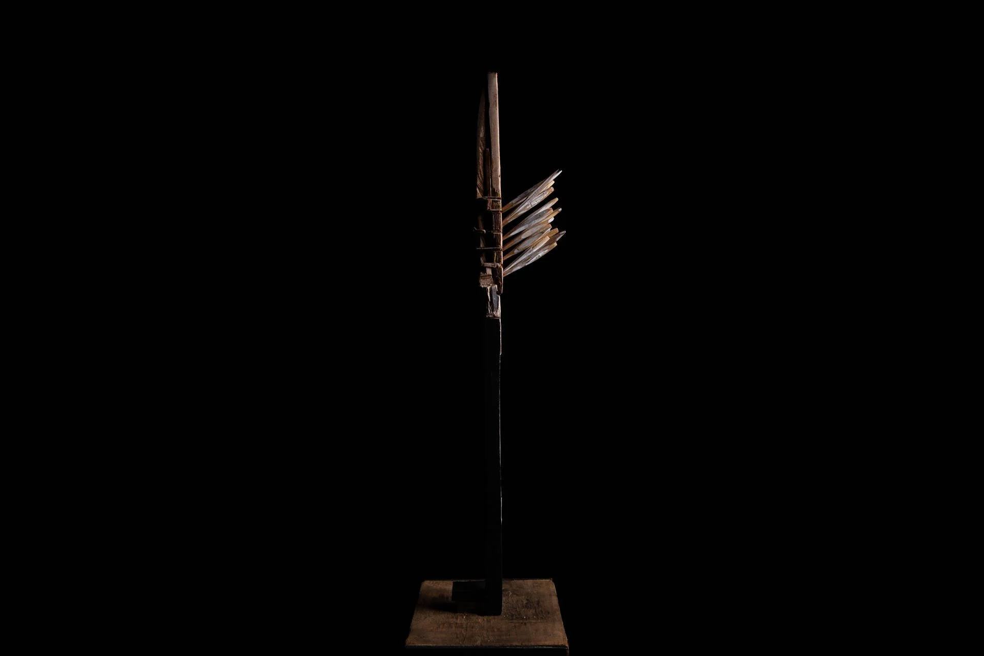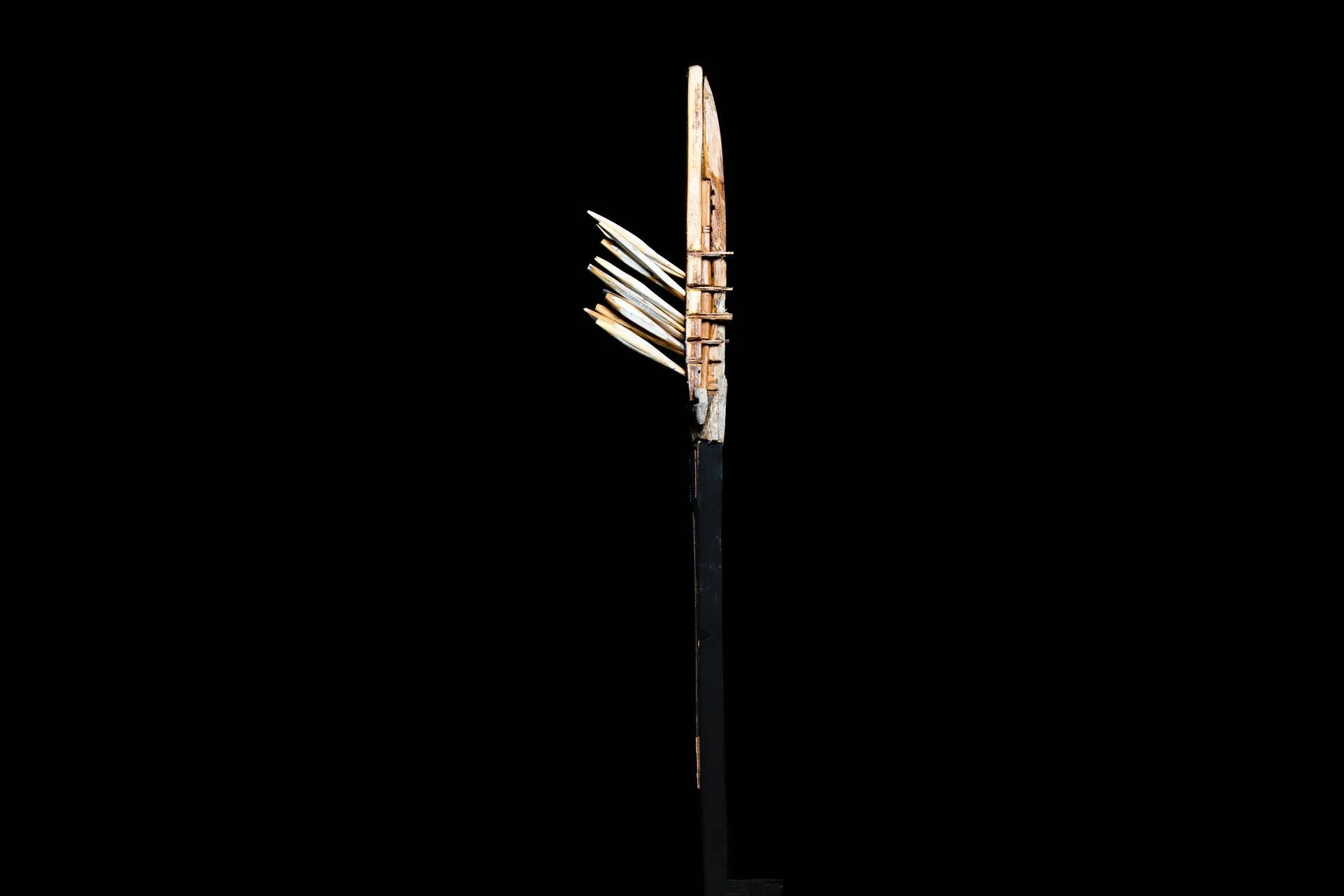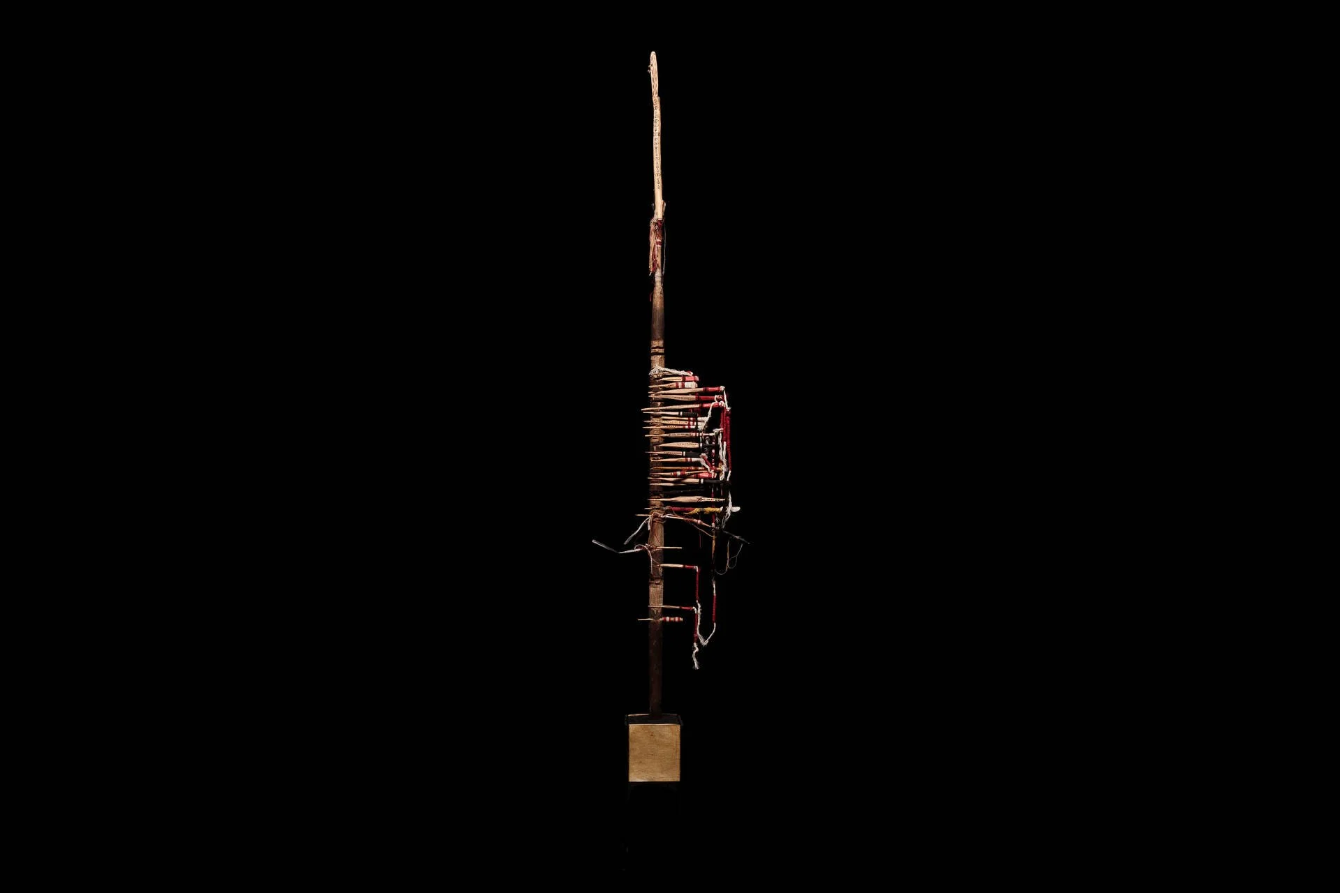 Dans mon travail, chaque morceau de bois, taillé ou trouvé, devient un objet transitoire : éphémère mais chargé de transformation. Assemblés autour d'un mat — principe d’unité — ces fragments singuliers forment une « famille », un tout vivant et cohérent. La structure ainsi créée agit comme une signalisation : elle oriente, relie, et interroge notre rapport au passage, à la continuité et à l'interdépendance. La quantité n’est pas une simple addition d’éléments, mais la densité d’un lien invisible : une manière de capter le mouvement du monde et de rendre tangible l’indicible.