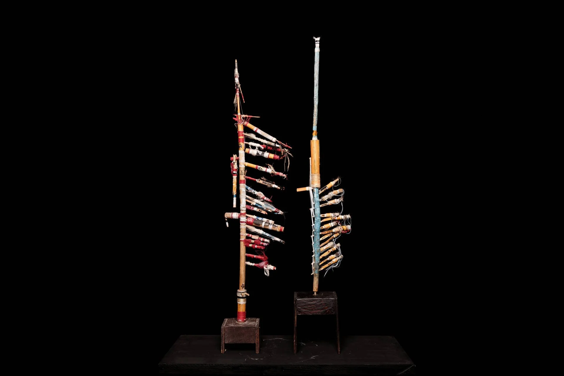 In my work, each piece of wood, carved or found, becomes a transitory object: ephemeral yet charged with transformation. Assembled around a mast — a principle of unity — these singular fragments form a "family," a living and coherent whole. The structure thus created acts as a signpost: it guides, connects, and questions our relationship to passage, continuity, and interdependence. Quantity is not simply the accumulation of elements, but the density of an invisible bond: a way to capture the movement of the world and make the intangible tangible.