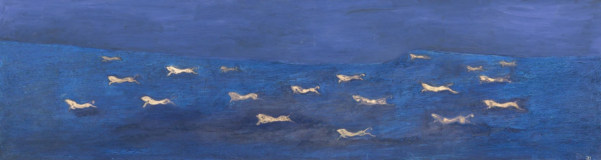 A soundscape fills the room: the rhythm of hooves—galloping, approaching, vanishing.