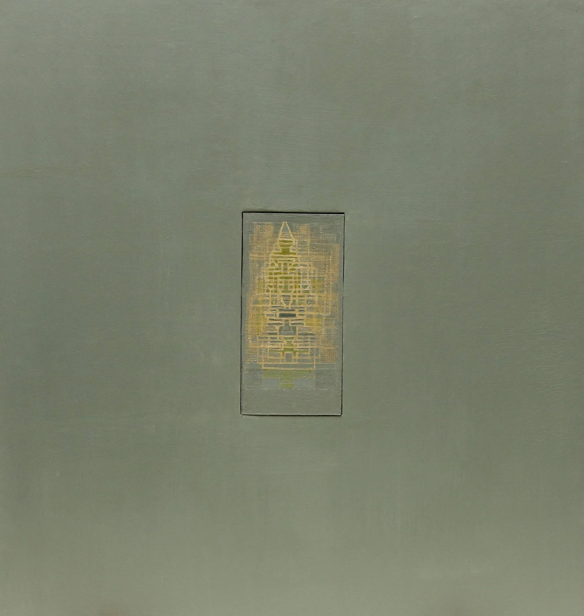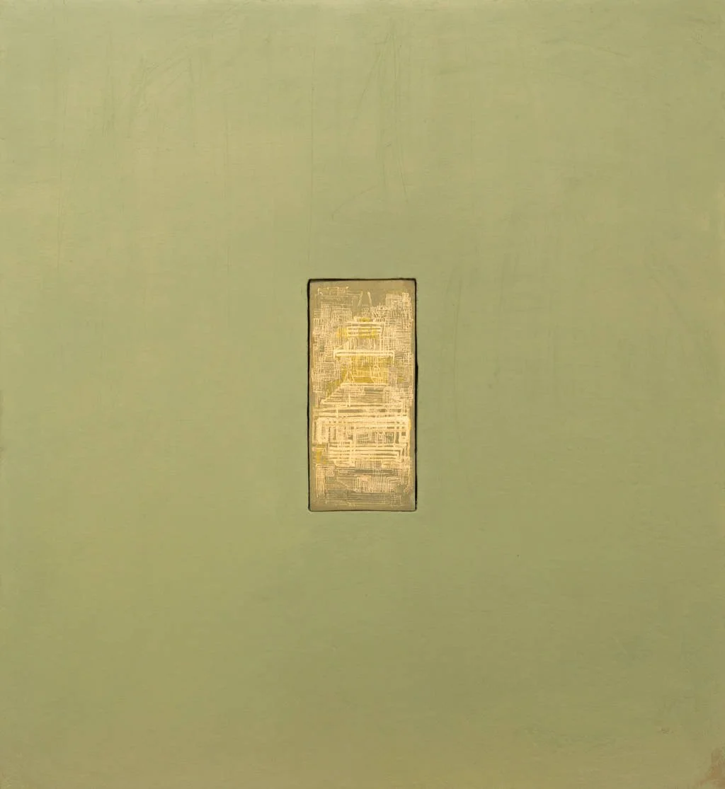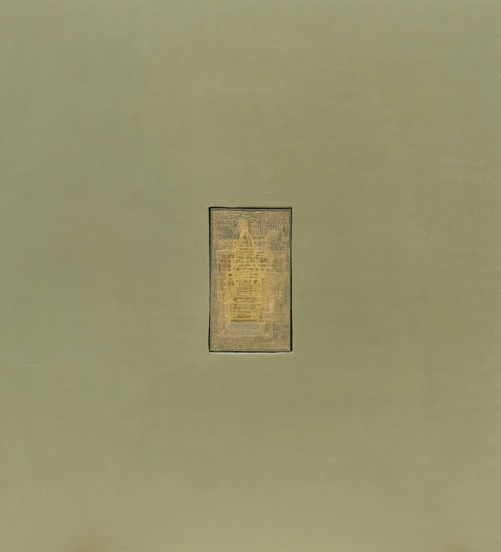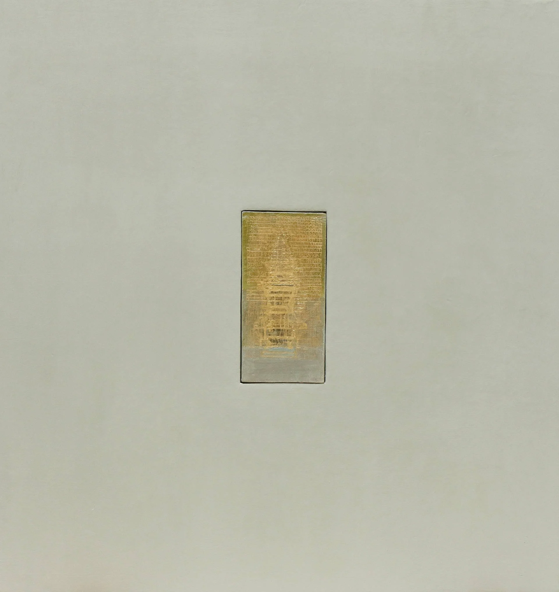 L’effet est celui d’un sanctuaire scellé dans la matière, un signal discret mais irradiant. L'encastrement n'est pas décoratif : il devient un seuil. Une invitation à entrer dans le tableau, à plonger dans une géométrie du silence.