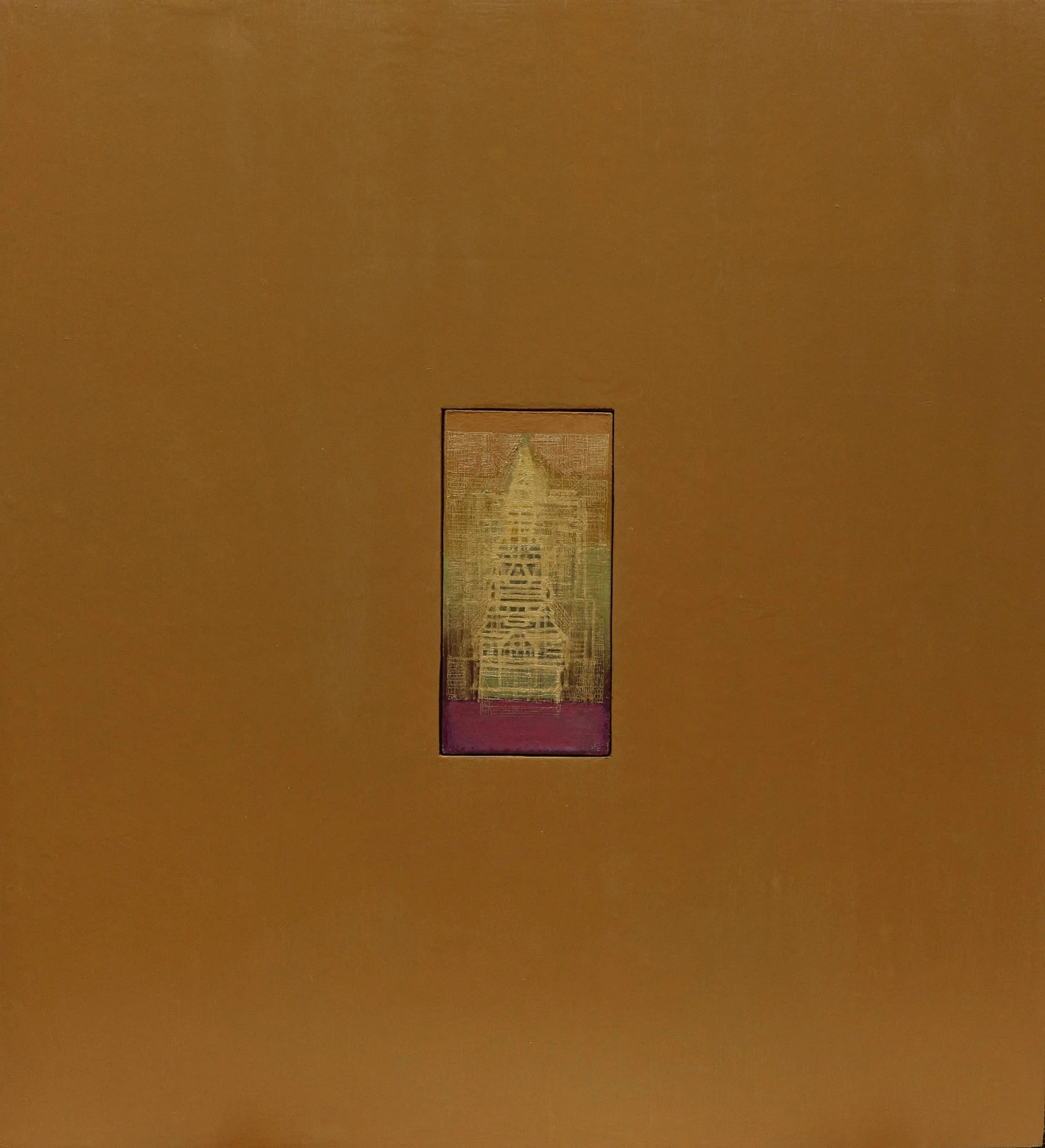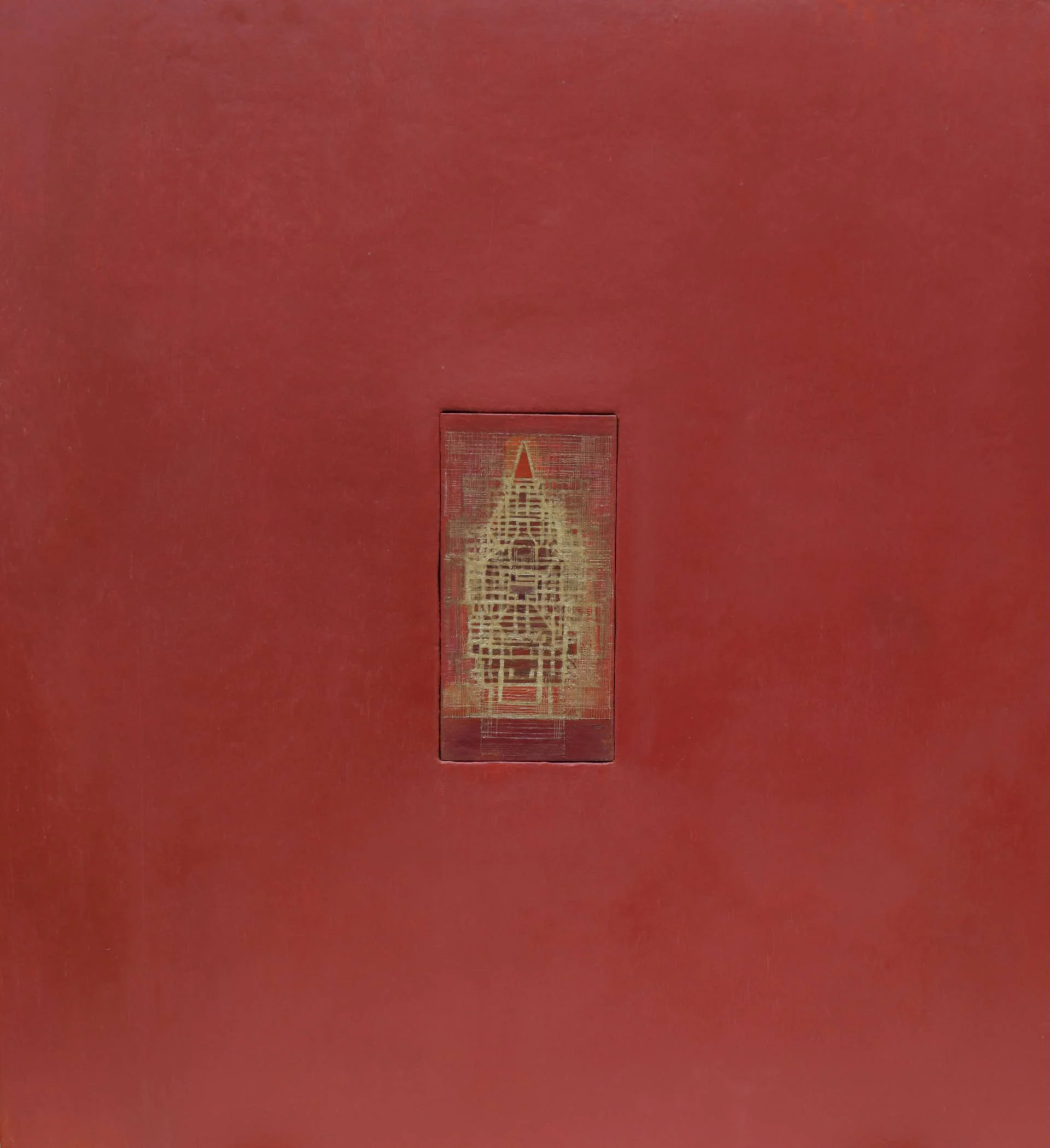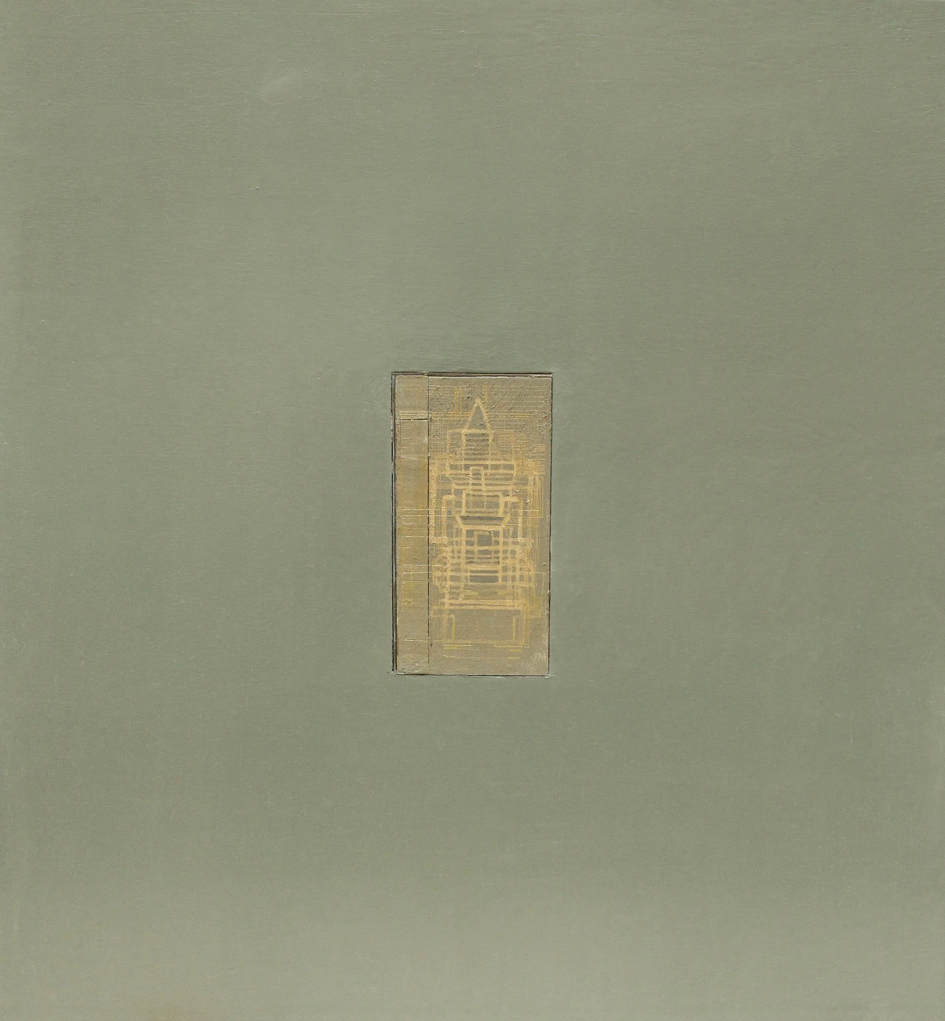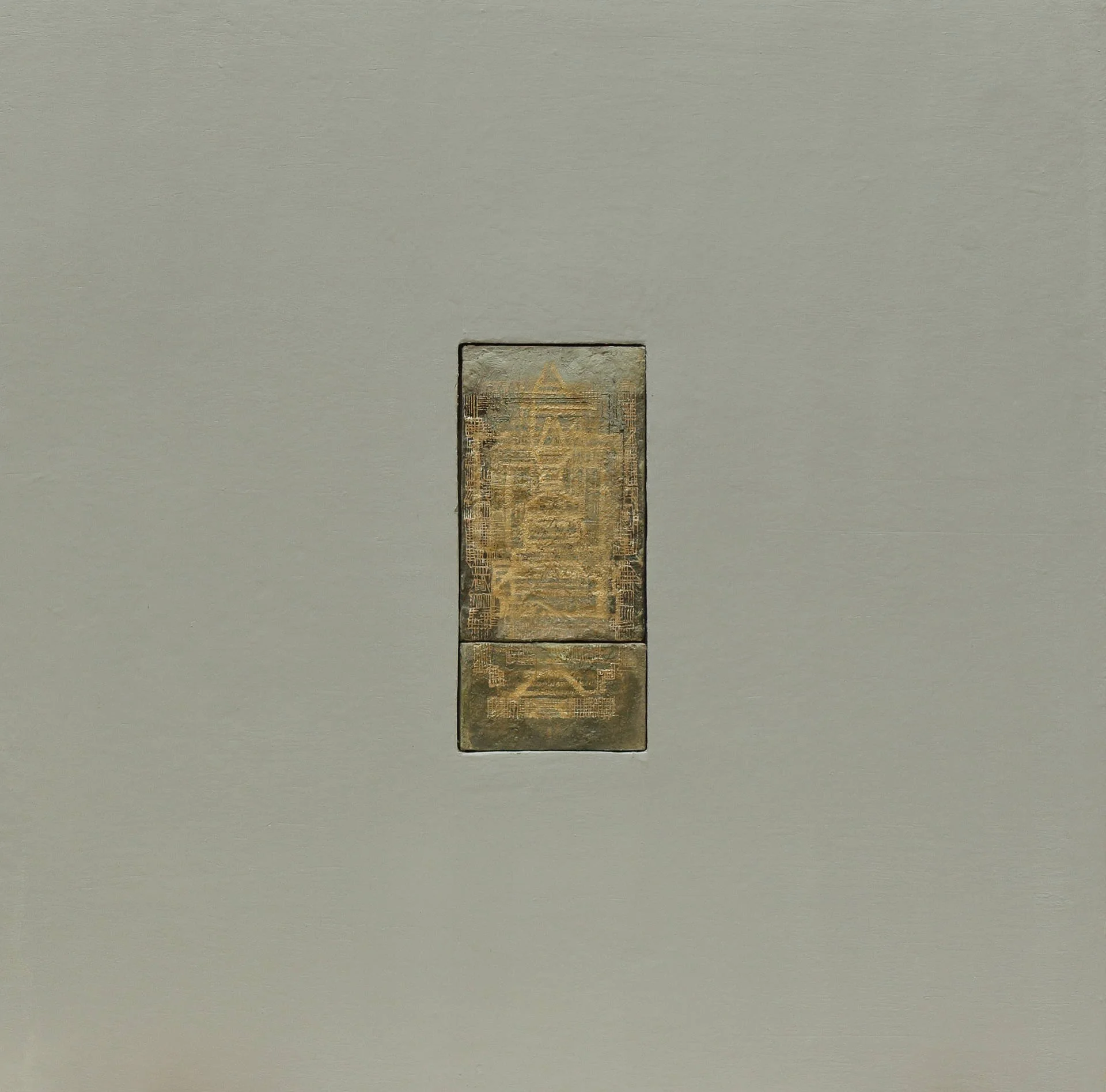 Une large étendue monochrome. Au centre, une forme encastrée comme un secret contenu.